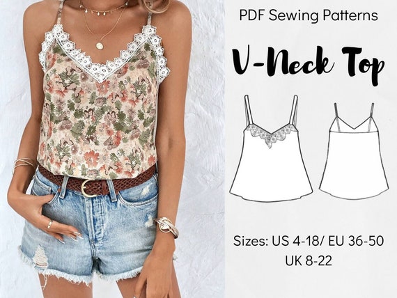Pattern Sewing Cami V Neck Top Digital Pdf Sewing Pattern Etsy Uk